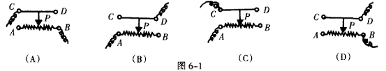 [例1]如图6-1所示的滑动变阻器的四种接法中,当滑片P 向右移动时使电路的电阻变小的接法是( )。