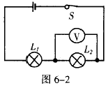 [例2] (长沙市)在如图6-2所示的电路中,电源电压是6 V,电压表示数是2 V,电压表测的是灯 两端的电压,灯L1两端的电压为 V。