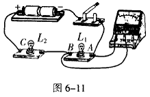 2.(安徽省)在探究串联电路的电压关系时,某同学使用的实验电路如图6- 11所示。他先用电压表正确地测量了灯泡L1两端的电压,为了测量灯泡L2两端的电压,他想将电压表接A点的那一段导线改接到电路中的C点,而保持电压表接B点的导线不动,你认为这种接法是 (选填写“正确”或“不正确”)。你这样判断的理由是: