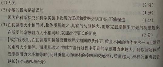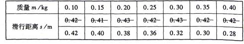 (2)小敏认为:木块及钩码的质量越大,对水平面的压力越大,则滑行中受到的摩擦阻力也越大,滑行距离就会越短。因此,他认为数据有问题,于是对上表数据做了如下改动: