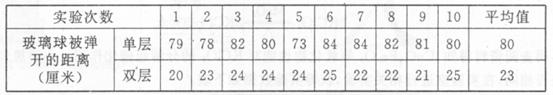②随意拉开橡胶球,放手后让其敲击玻璃板,玻璃球被弹开,记下玻璃球被弹出的距离。共做10次。