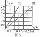 7、两定值电阻甲、乙中的电流与电压关系如图5所示,现在将甲和乙串联后接在电压为3V的电源两端,下列分析正确的是:A、甲的电阻值大于乙的电阻值 B、甲的电压大于乙的电压 C、甲消耗的电功率大于乙消耗的电功率 D、甲的电流等于乙的电流![]()