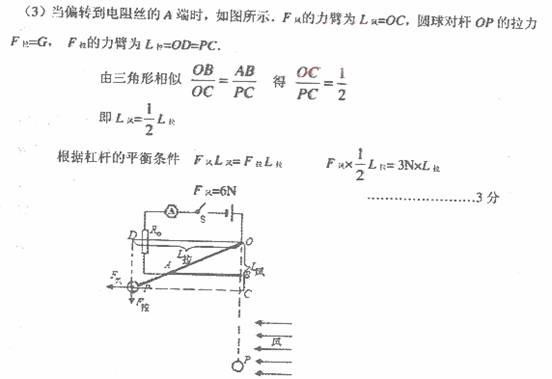 32、(1)无风时,电流表示数为0.15A。(2)当金属细杆OP滑到AB中点时,电路中电流为0.24A。电路消耗的总功率是2.88W。
