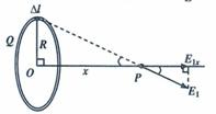 为R,所带的总电最为Q。过圆环中心O点作一垂直于圆环平面的直线,那么在此直线上与环心相距为x的P点处的电场强度EP的表达式是怎样的呢?