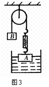 如图3所示,浸在水中的A物体的质量为3kg,B物体的质量为2kg,且整体处于静止状态,弹簧测力计自身重力不计。下列说法正确的是( )