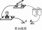 如图所示,将导体接到电路A、B之间时,导体与灯泡是 ▲ 联的.如果将不同的导体分别接到A、B之间,闭合开关,可通过观察、比较 ▲ 来判断不同导体电阻的大小.若两个导体的电阻差异不大,则可以用 ▲ 表替换灯泡,作进一步的判断.