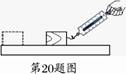 19.在探究凸透镜成像规律时,首先应调节凸透镜、光屏和烛焰,使它们的中心在同一直线上,并且大致在 ▲ .如果凸透镜焦距为10cm,物距为25cm,移动光屏,可以在光屏上得到一个倒立、 ▲ 的实像.在照相机和投影仪中,成像情况与此类似的是 ▲ .