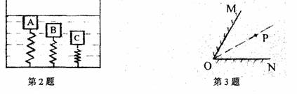2.如图所示,A、B、C是三个用不同材料制成的体积相同的物体,现将它们用相同的弹