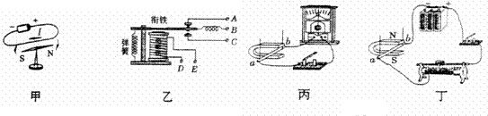 D.丁是闭合电路的一部分导体放入磁场中,导体中就产生电流