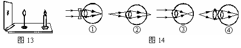 (2)图14所示的四幅图中,正确表示近视眼成像情况和矫正方法的是 ( )