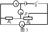 5. 如图3所示,电源电压保持不变时,当滑动变阻器滑片P向右滑动过程中 [ ]