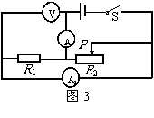 5. 如图3所示,电源电压保持不变时,当滑动变阻器滑片P向右滑动过程中 [ ]