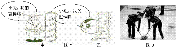 15. 如图7所示,螺线管磁性的有无可以由 的有无来控制,其极性与螺线管中的 方向有关;若将甲和乙两螺线管串联在电路中, 的磁性更强(选填“甲”或“乙”).