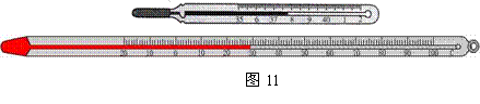 19. 今年全球流行甲型H1N1流感,患上这一流感后第一症状就是发热,因此要用到体温计测量体温.如图11所示是体温计和实验室常用温度计,请简要说出它们在构造或使用上的三个不同点.