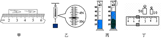 丙:物体体积 ; 丁:天平平衡后被称物体质量是_______.