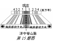 右图为大西洋中脊山脉及其周围约100公里范围内海底岩层年代分布的示意图。图中数字为岩层距离现在的年数。这一现象支持了