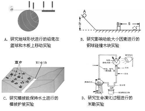 19. 在科学研究和学习中,常常受客观条件的限制,不能直接实验和测量,要创造条件进行模拟实验。下列有四个来自教材的实验,不属于模拟实验的是