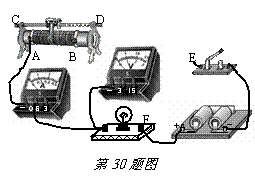 (1)右图中电路连接尚未完成,E应与滑动变阻器的 ▲ 接线柱相连接,F接线柱应与电压表上标有 ▲ 的接线柱相连。