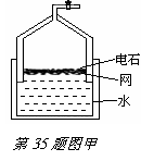 电石是灰色块状固体,化学式为CaC2。焊接金属(水焊)时使用的乙炔(C2H2)气体,就是由电石发生如下反应生成的:CaC2 + 2H2O = Ca(OH)2 + C2H2↑,通常使用如图甲所示简易装置。