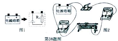 38、有一种电源暗箱,内有一电源与一定值电阻串联,如图1所示。某同学为了测定电源暗箱内电阻Ro的阻值,设计了如图2所示的电路,在确认链接正确后,进行实验