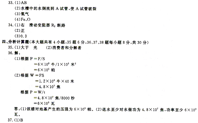 36.改革开放以来,我国城乡面貌发生了日新月异的变化,民众的住房条件得到了很大的改善。建造某幢公寓楼,所用建筑材料的总重为6×108牛。此公寓楼楼顶到地面的高度为40米。求: