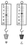 ②在塑料杯中装满水,弹簧测力计的指针指在如图甲所示的位置;
