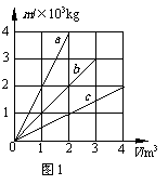 5.分别由不同物质a、b、c组成的三个实心体,它们的质量和体积的关系如图1所示,由图可知