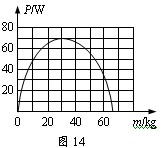 (2)假设他身体可以提供的功率P如图14那样取决于所搬运物体的质量m。若要尽可能快地把这批器材搬上去,那么他每次搬运的箱子数应为 个。