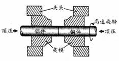 如图所示,不旋转的铝件在强大压力作用下顶住高速旋转的铜件,通过_______的方式使两者接触处温度急剧升高,内能增大,这样铜和铝接触处的分子相互渗透,由于分子间存在________力的作用,从而使两者紧密结合在一起,这就是先进的“旋转焊接”技术。
