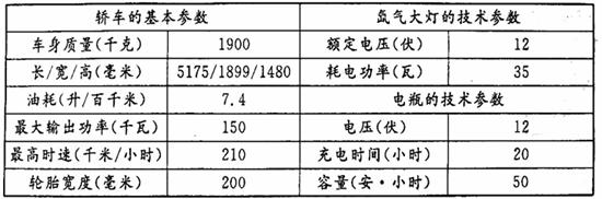 (2) 该轿车的头部装有两盏氙气大灯,若用该轿车上充足电的电瓶给氙气大灯供电.最多能供氙气大灯正常工作多长时间?
