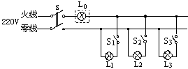 12.工人师傅常用一只标有“220V 40W”的灯泡L0(检验灯泡)取代保险丝来检查新安装的照明电路中每个支路的情况,如图2所示。当只闭合S、S1时L0不亮;当只闭合S、S2时L0和L2都呈暗红色;当只闭合S、S3时L0正常发光。由此可以判断