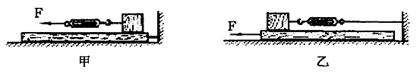 甲方案:在水平实验桌面上将木板用线拉住,通过弹簧测力计沿木板方向水平拉木块,使木块在木板上面滑动。