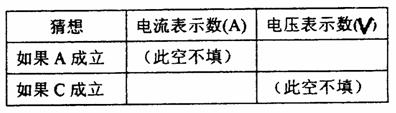 根据小刚的猜想,请你借助图中的电流表和电压表验证小刚的猜想,将电压表、电流表示数填入下表。
