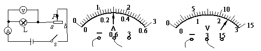 13.下图是伏安法测小灯泡电阻、功率的实验电路图。小灯泡正常工作时,两电表的示数如图所示,则下列说法中不正确的是