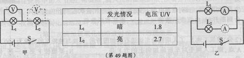 49.(4分)同学们通过实验探究“电功率跟电流、电压的关系”.
