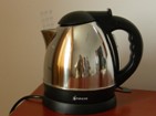 如图所示的电水壶正在工作,发现电阻丝热得把水烧开,而与其相连接的导线却几乎不热,请你运用所学的物理知识解释这个现象。