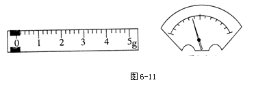 一架托盘天平砝码的质量和个数见下表,天平的游码标尺如图6-11所示,调节该天平平衡后,用它称某物体的质量,将被测物体放在天平的左盘,在右盘中放入20g、10g和5g的砝码各一个后,横梁指针停在右图所示位置.问:
