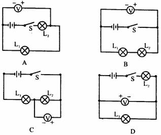 1、在如图所示的电路图中,不能用电压表正确测出灯L1 两端电压的是( )