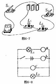 如图6-7电路,当S1、S2都接通后,电压表所测量的是( )