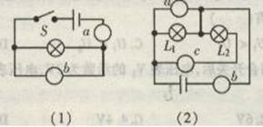 在下图所示的电路中,闭合开关S时,两灯都不亮,电流表指针几乎没动,而电压表指针有明显偏转,则该电路的故障可能是( )