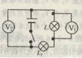 2. 在下图所示的电路中,当开关闭合时,电压表V1的示数是2.4V,V2的示数是4V,那么L2两端电压是______V。