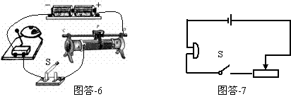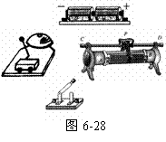 2.小强学习了滑动变阻器的使用方法后,想利用如图6-28所示的器材设计一个可以控制电铃声音大小的电路,请你协助他完成下列任务: