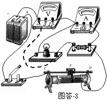 1. (1)如图答-6 ; (2)如图答-7; (3)向左调节滑片