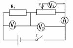 3、当滑片上有电压表时,变阻器就不能改变电路中的电阻了。如下图电路。则电流表A和V1 、V2的示数不变。而电压表V3测的是变阻器中滑片右边电阻的电压,所以当滑片向右移动时,其表示数变小。