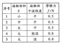 (3)右表为实验记录表格,通过分析表中序号为______________的实验记录.可得到的初步结论是:滑动摩擦力的大小与__________________________________无关;表中序号为3、4、5的实验记录,则可说明滑动摩擦力的大小与__________________________________________有关。