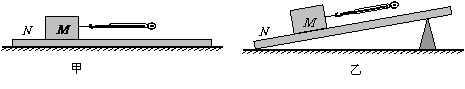 7、小明同学喜欢动手用简易器材探究物理问题。某天,他用一块较长的木板N与木块M及弹簧测力计,按如下方法研究滑动摩擦力与压力的关系,如图3所示。先将长木板N平放,用弹簧测力计拉着木块M在N上做匀速直线运动,如图甲,此时木块 M所受滑动摩擦力为f甲;然后再将N支起,仍然用弹簧测力计拉着木块M沿N斜向上做匀速直线运动,如图乙,此时木块M所受滑动摩擦力为f乙。请你判断这两种情况下,木块M受到的滑动摩擦力大小关系是: