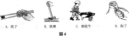 如图所示的简单机械,在使用中属于费力杠杆的是 ( )