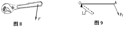 8.图8是用扳手转动螺母的示意图(螺母的中心为支点O),请在图中画出动力的力臂。