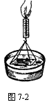 3.如图7-2所示,将一表面干净的玻璃板挂在弹簧秤下面,手持弹簧秤的上端将玻璃板放至刚与水面接触后,慢慢提起弹簧秤,观察到玻璃板未离开水面时弹簧秤的示数比离开水面后的示数_________,其原因是_________.