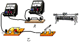 ①图7甲、乙提供的两个电路图,哪个是他设计的电路.答:__________(填“甲图”或“乙图”),在这个实验中,滑动变阻器的作用是:_______________________